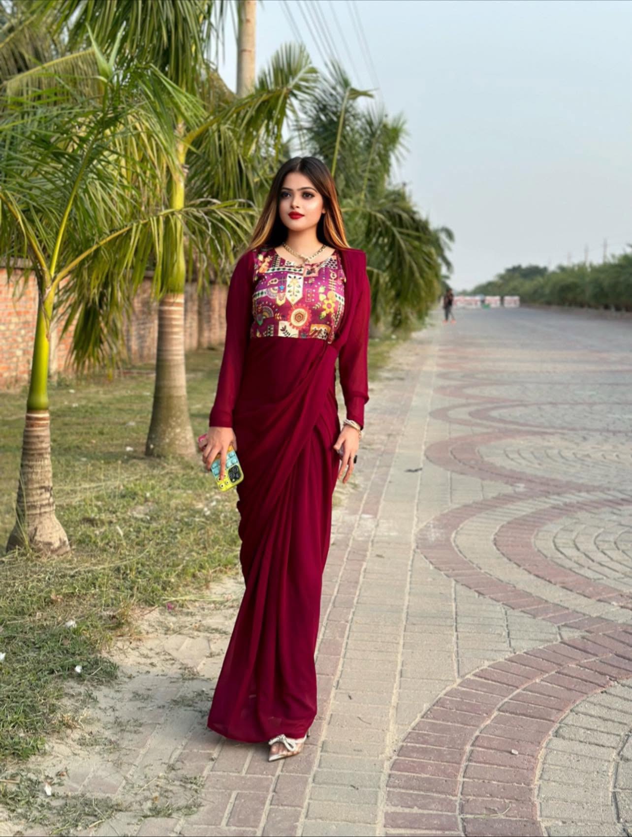 Full ready designer saree attached with top to bottam